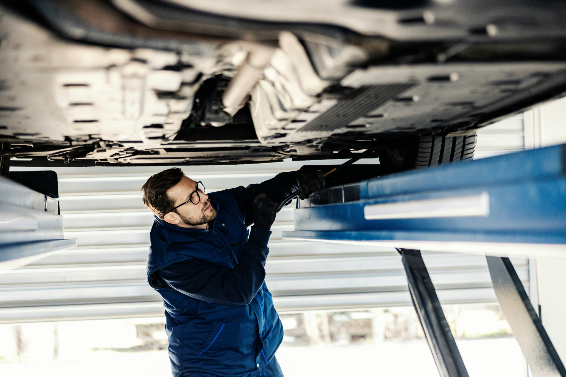 Før du går i gang, skal du sørge for, at bilen står sikkert og stabilt. Find et plant, fast underlag – helst asfalt eller beton – og træk håndbremsen. Hvis du står på en vej, så tænd havariblinket og sæt advarselstrekanten op i god afstand.
